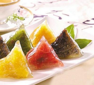 水晶粽,水晶粽色泽鲜艳,表皮晶莹剔透。水晶粽是以西米为原料,加上各种各样的配料,如豆沙、水果等馅料。而传统的粽子都是以糯米为原料,加上各种各样的配料,大多属于高油脂,高热量的食物,吃多了不宜消化,特别是老人,小孩和消化能力差的人更不能多食。