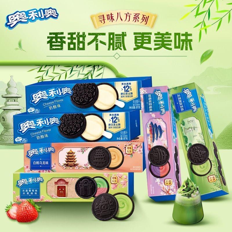 奥利奥薄脆夹心饼干95g草莓香草抹茶无花果味休闲小吃零食