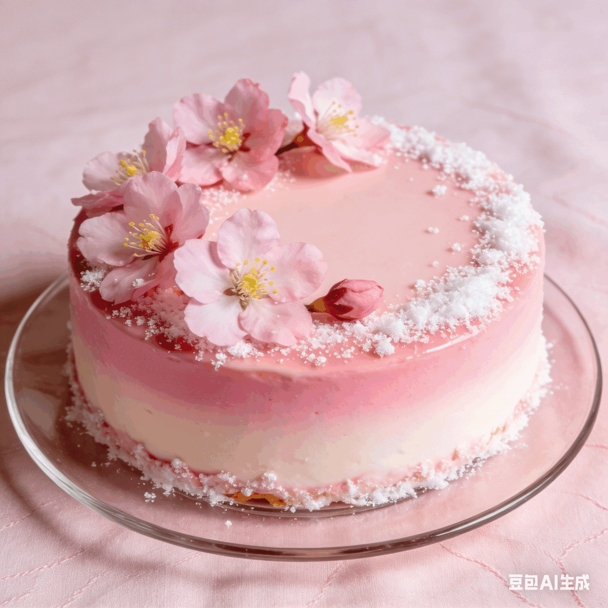 初见便被它的颜值打动——顶层是轻透如樱花雨的镜面,缀着一朵可食用盐渍樱花,粉白渐变的慕斯体藏着细密的樱花碎,切开后还能看见底层浅黄的酸奶蛋糕胚,像春日午后的阳光洒在樱花瓣上,每一处都透着清新雅致。