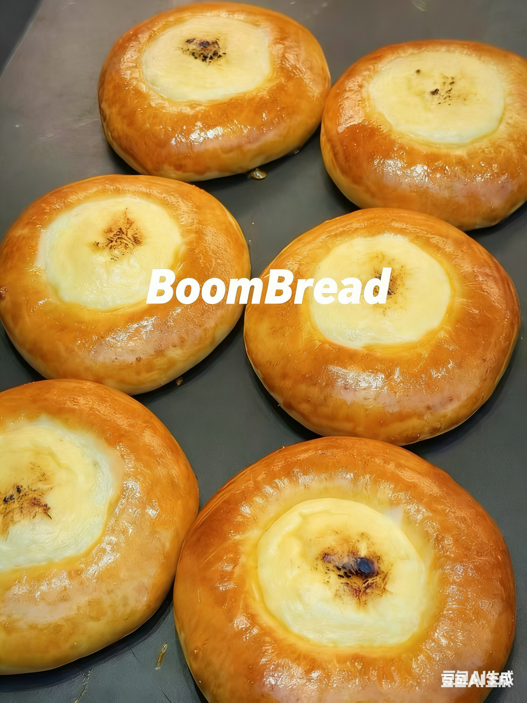 【会爆浆的芝士面包!一口沦陷的软 fufu 快乐】谁能拒绝烤得油亮的面包顶,裹着会流心的芝士内馅!BoomBread 这款芝士流心面包,外层是金黄软韧的面包体,顶部烤出焦香的芝士圆顶,撕开就能看到绵密的芝士夹心 —— 微微咸香的芝士混着面包的麦香,软嫩不腻,冷吃是绵密口感,加热后芝士流心直接爆出来,早餐配牛奶、下午茶当小食都超适配!