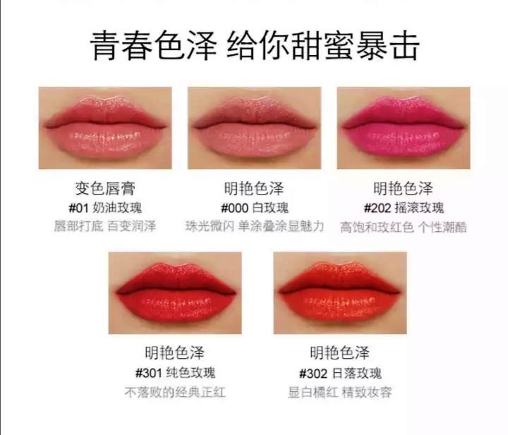 • 颜色分类: 02#苹果红星耀限定版 888#锦鲤色星耀限定版 A01#印象玫瑰 A02#复兴女郎 A03#野兽橘子 A04#波普野莓 A05#浪漫可可 A06#法式蜜粽 102#苹果红 103#脏橘色 104#红棕闪 106#肉桂豆沙 108#红棕豆沙 锦鲤色 01#玫瑰蜜桃 03#草莓慕斯 04#轻恬蜜柚 05#浆果梅子 107#黑樱桃酱