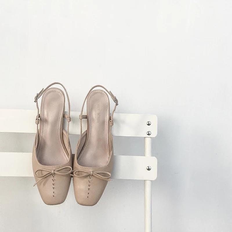 2018新款粗跟一字带包头浅口单鞋女夏季蝴蝶结百搭中跟凉鞋
