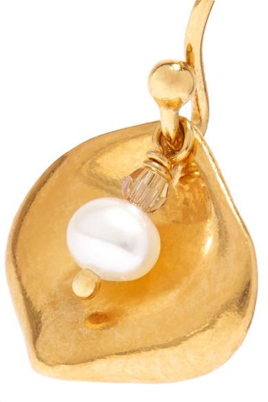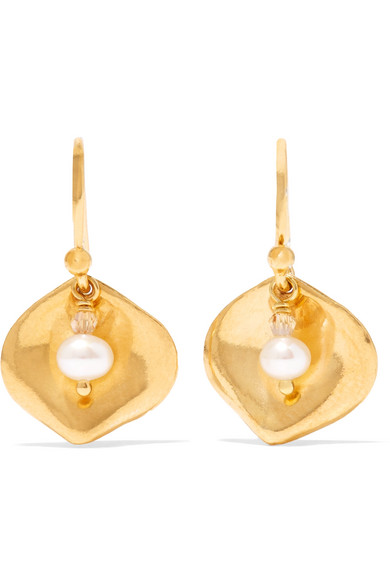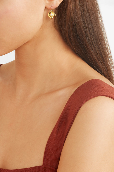 Chan Luu 这款耳环以镀金纯银手工制成,形似非洲文化中寓意“保护”的玛瑙贝。单品的中心缀有亮泽的水晶和珍珠吊坠,当你迈步时,它便会随你的步调柔和摆动。前去度假时,不妨佩戴此款耳环,只需将秀发收拢耳后,便能让其为你的装束增光添彩。
