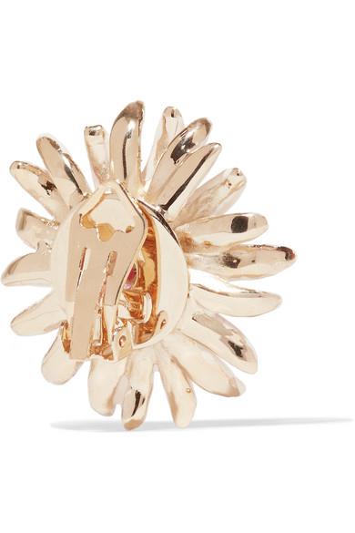 Etro 这款夹扣式耳环将植物元素与本季大热的个性珠宝潮流相结合,轻轻松松就能留下令人深刻的印象。它选用亮泽的金色黄铜精心打造,饰有粉色和象牙白色搪瓷,中央还缀有精致的玫粉色水晶,光泽熠熠。佩戴时不妨将秀发掖进高领毛衣中,令单品成为造型的焦点。