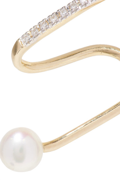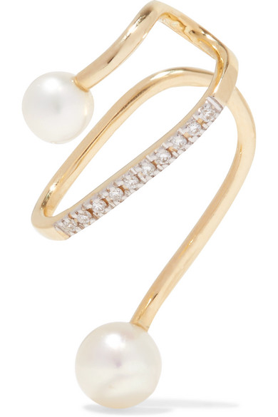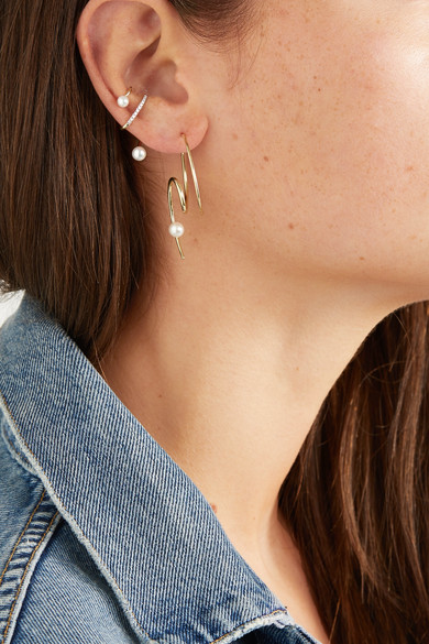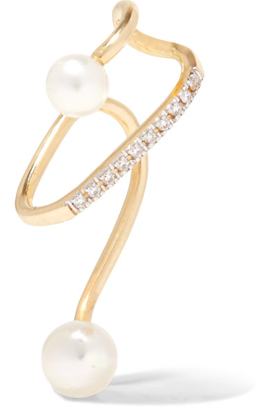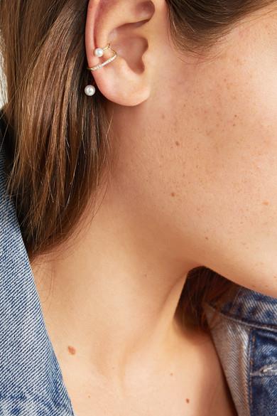 想要让造型时髦度轻松提升一个档次?Maria Black 这款 “Skyrush” 耳骨夹便是你的助力。它以抛光 14K 黄金制成,可温柔“拥抱”耳廓中部,上下两端各点缀着一颗莹润的淡水珍珠,主体上还嵌有总重 0.04 克拉的细钻。建议与同系列的类似款式一起佩戴。