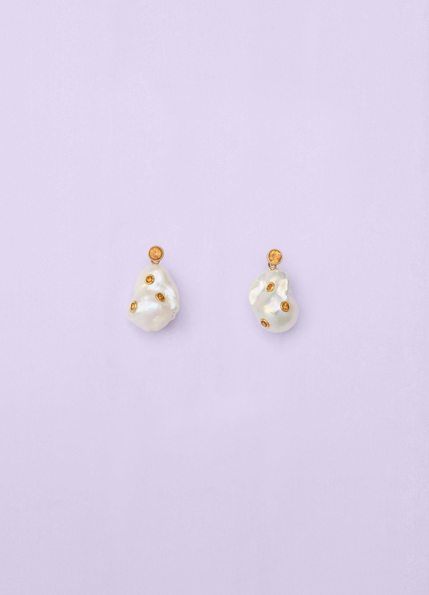 甜果耳饰tianguo BAROQUE镶饰养殖珍珠、黄水晶和金色饰面黄铜简约耳环