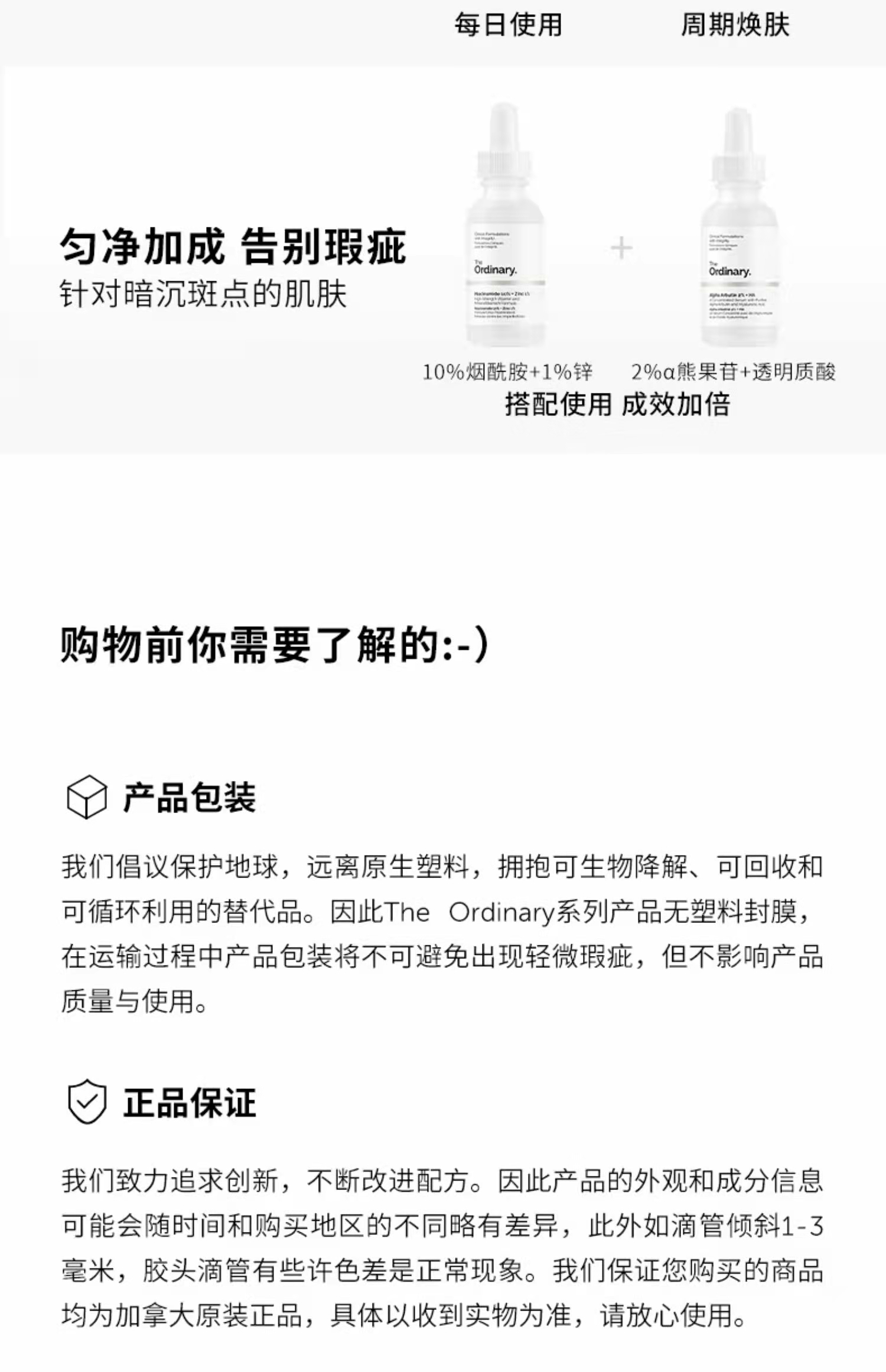 烟酰胺(维生素B3),是一种经过充分研究的活性成分,因它对皮肤具有多种益处而闻名。10%烟酰胺用于减少皮肤瑕疵,提亮肤色,平衡面部皮脂。烟酰胺可以促进皮肤屏障功能的健康,恢复匀净亮泽的状态。