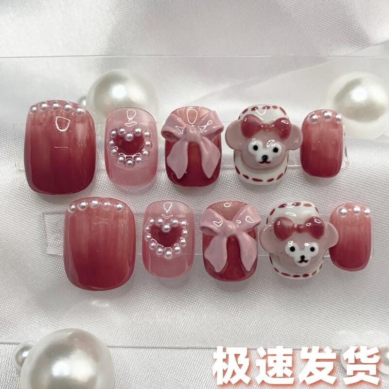粉红色蝴蝶结小熊可爱风洛丽塔风穿戴甲