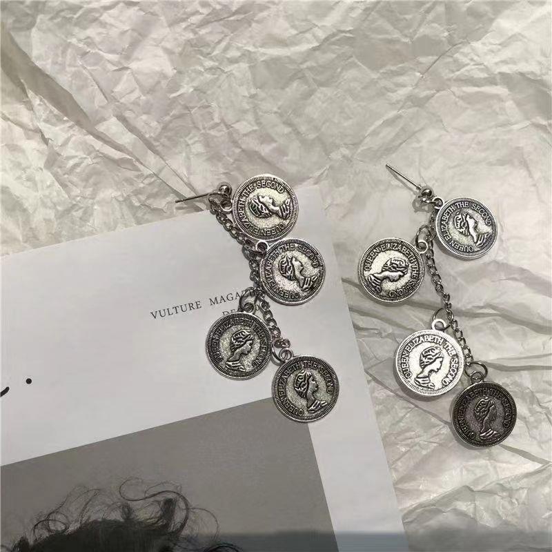 我们为您带来了一款网红同款长款流苏耳钉耳夹,它充满了欧美做旧人像钱币金币的元素,呈现出一种冷淡风,让您在众多耳环中脱颖而出。
