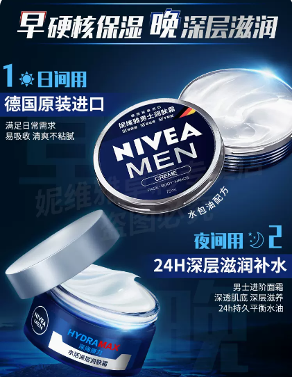德国原装进口,满足日常需求,易吸收,清爽不粘腻,男士进阶面霜,深透肌底,深层滋养,24小时持久,平衡水油,可随时用于脸部,手部,身体解决各种干燥困扰,保温保湿扛把子。