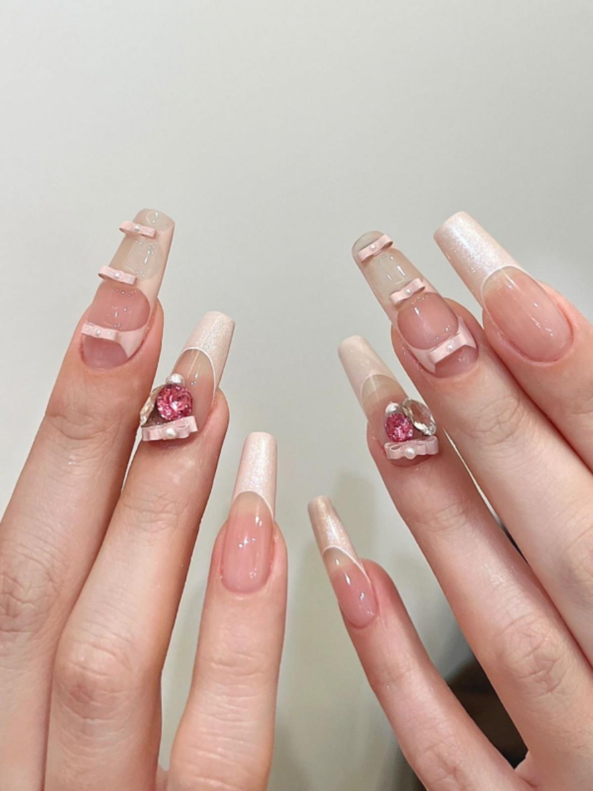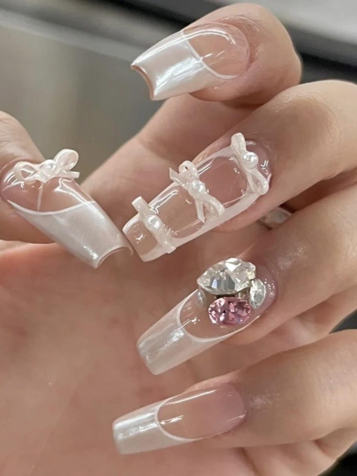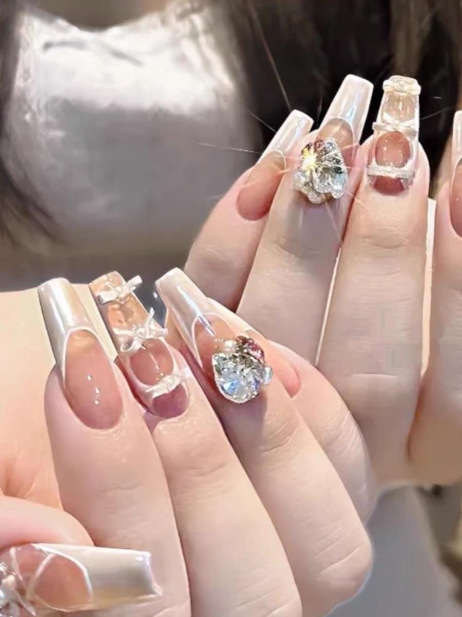 芭蕾风蝴蝶结法式美甲甲片手工穿戴甲高级感美甲穿戴式