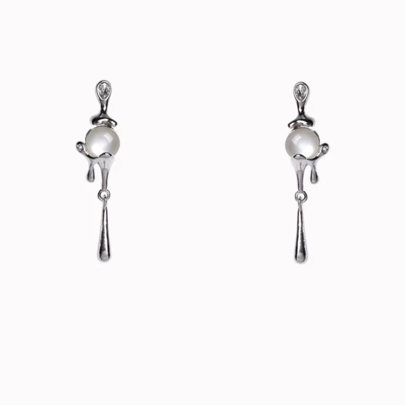 925银针融化猫眼耳钉耳环高级感小众耳饰不规则设计感