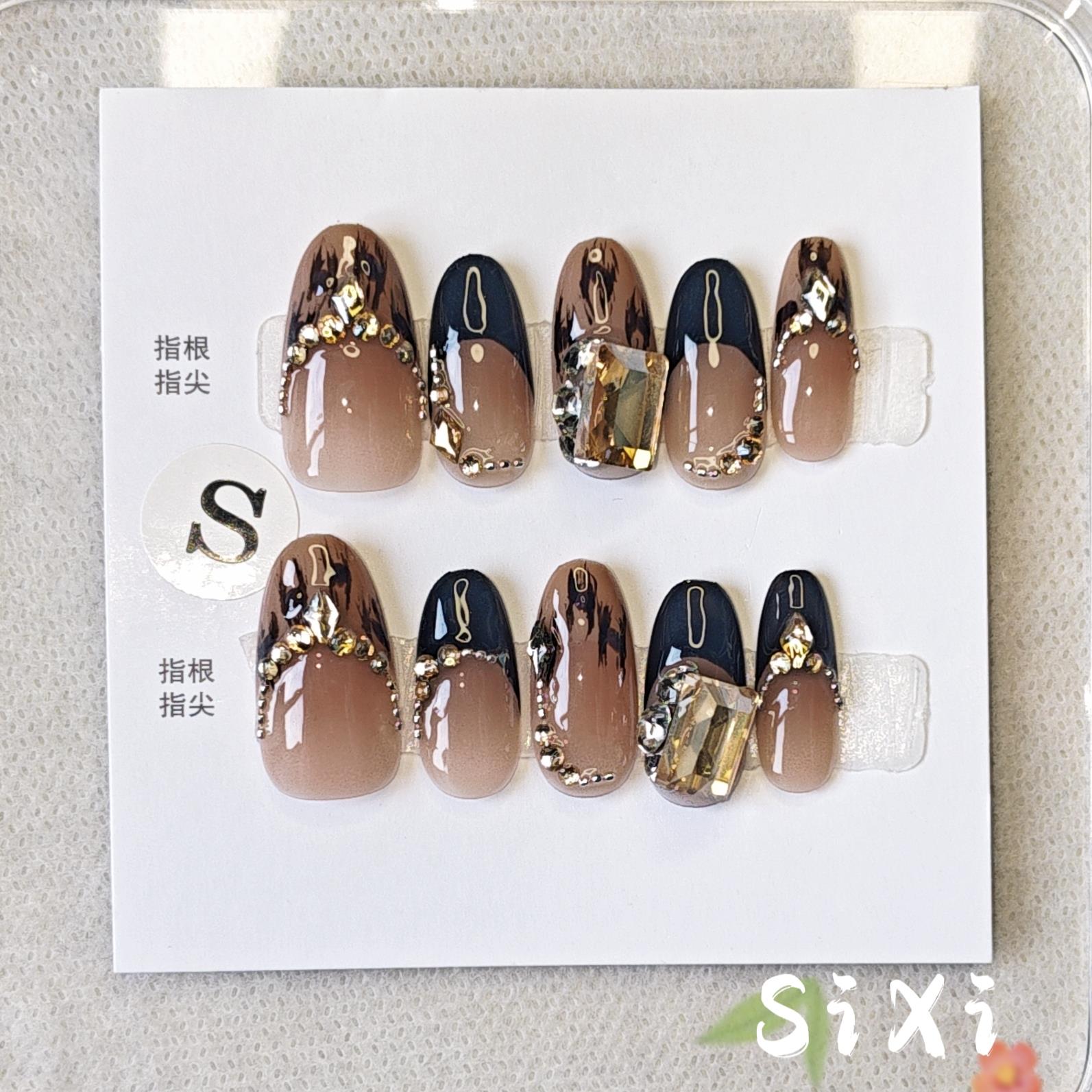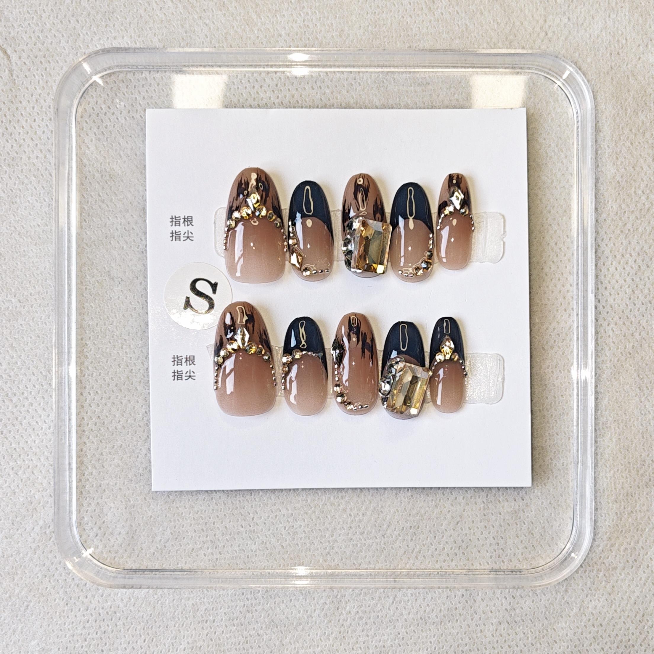 每一幅十片甲片都是经过甲片打磨、吻合剂、底胶、多层颜色甲油、胶底胶、饰品胶