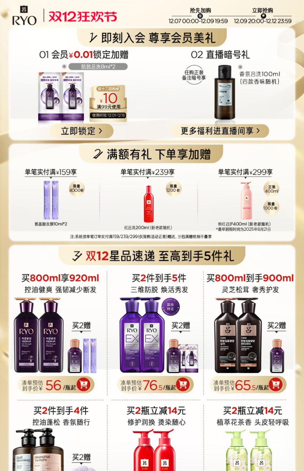 选择RYO吕香氛洗发水,不仅是选择了一款优质的洗护产品,更是选择了一份贴心、无忧的售后服务。双12加购期间,优惠不等人,快来抢购,开启您的秀发焕新之旅吧!