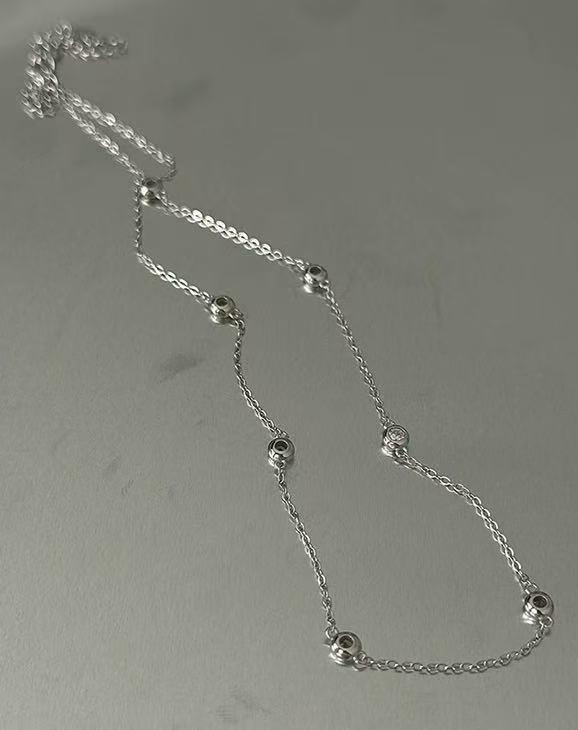链条采用优质银质材料打造,质感高级,闪耀着迷人的金属光泽,不易褪色和氧化,长久佩戴依旧亮丽如新。镶嵌的颗颗钻石,如同夜空中闪烁的繁星,璀璨夺目。