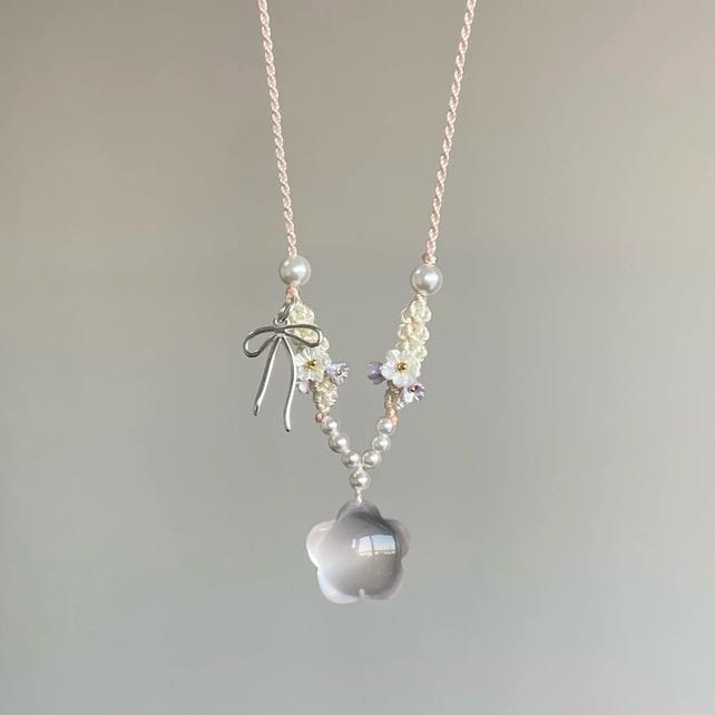 这款珍珠花朵蝴蝶结水晶吊坠项链是我们的设计师精心打造的作品。每一颗珍珠、每一朵小花都经过精心挑选,确保品质上乘。手工编织的链子不仅结实耐用,还充满了独特的艺术感。蝴蝶结和水晶花朵吊坠的搭配,让项链既有甜美气息,又不失优雅气质。无论是作为日常佩戴的首饰,还是重要场合的点缀,它都能展现出你的独特品味。而且,这条项链也是一份非常适合送给闺蜜、爱人的礼物,传递浪漫与美好。