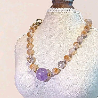 简介:渐变仿水晶+紫晶主珠,温柔低饱和色系,短款贴颈设计,适配旗袍/素雅汉服。