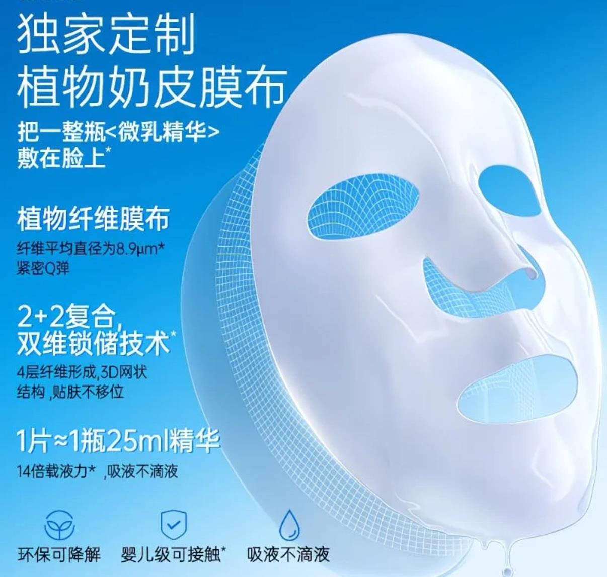 【膜布优势】采用轻薄天丝膜布,服帖度高,紧密贴合面部轮廓,承载足量精华液不滴落,让每一寸肌肤都能充分吸收营养。【使用场景】熬夜急救、换季维稳、晒后修护均可使用,日常护肤坚持敷用,改善肤质粗糙、暗沉问题,打造水润透亮好状态。