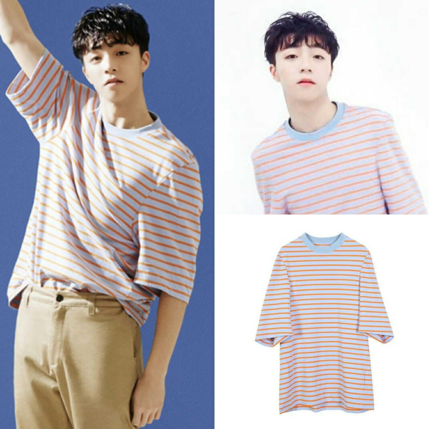 家居用品、厨卫清洁 > 内衣 > 2018夏季新款偶像练习生陈立农同款粉蓝条纹T恤男女大码情侣装t