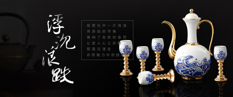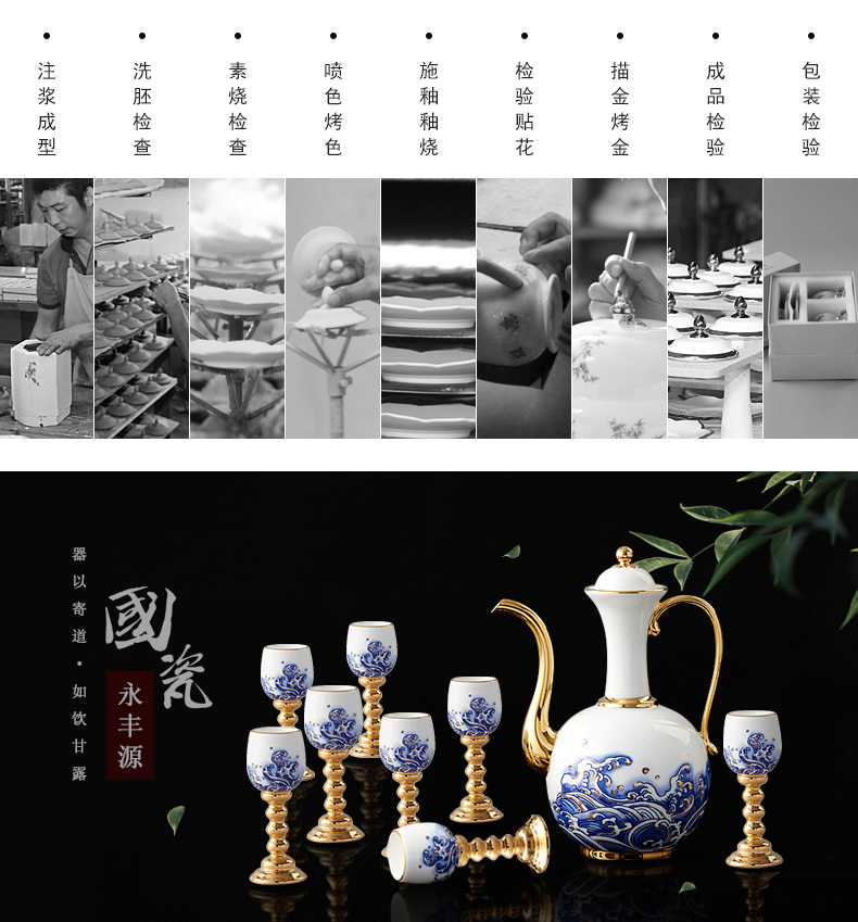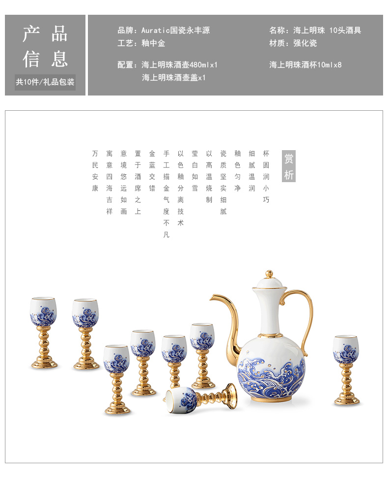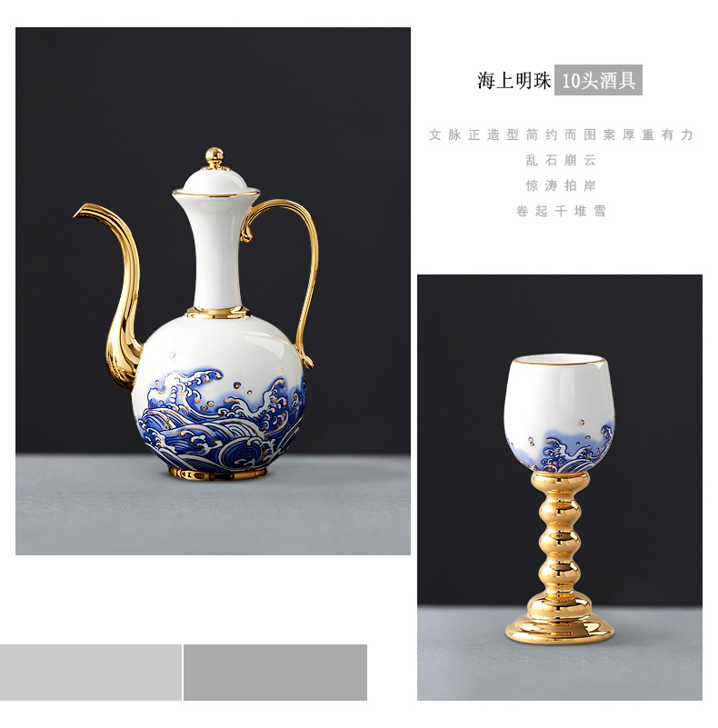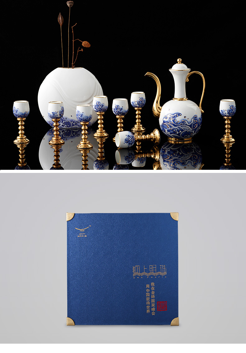 家居用品、厨卫清洁 > 餐具 > 国瓷巨匠先生瓷海上明珠 10头陶瓷白酒具套装 明酒高脚杯酒壶