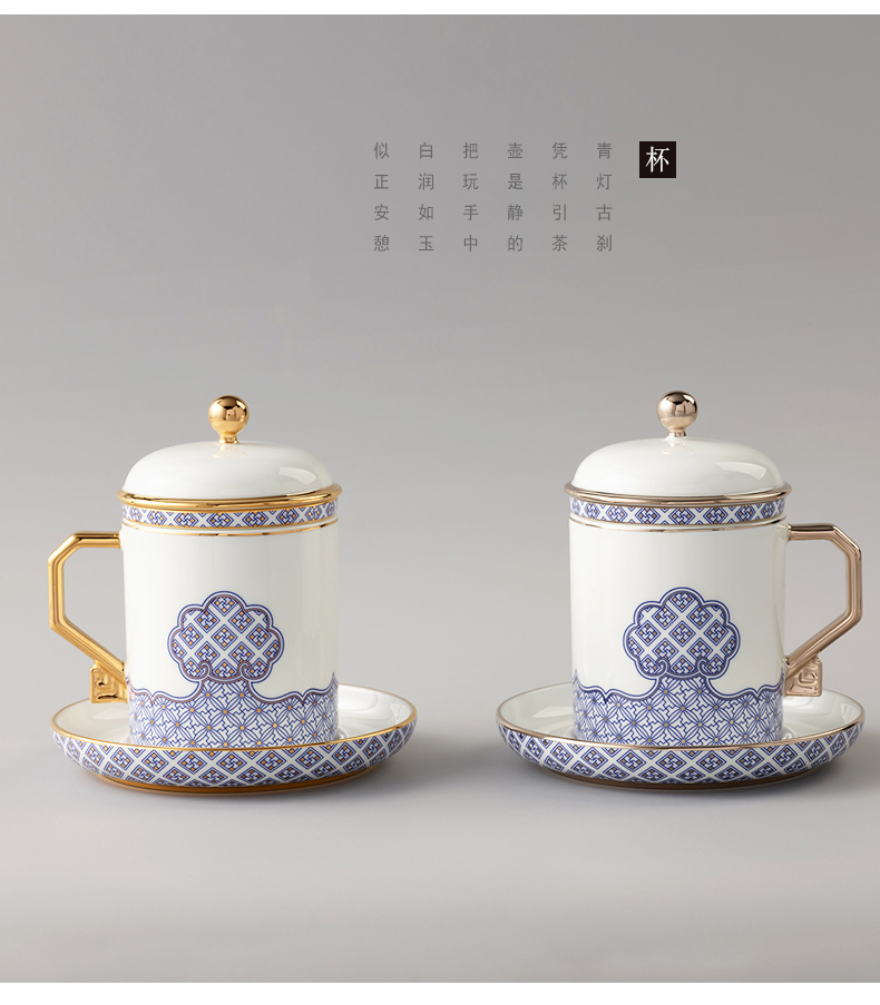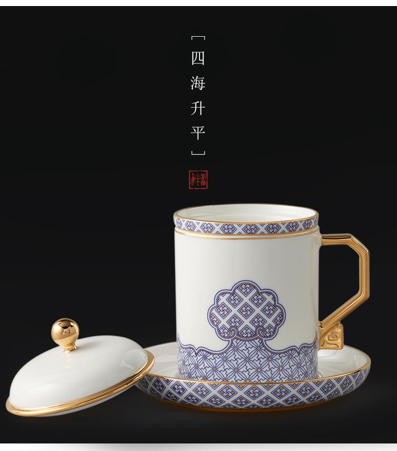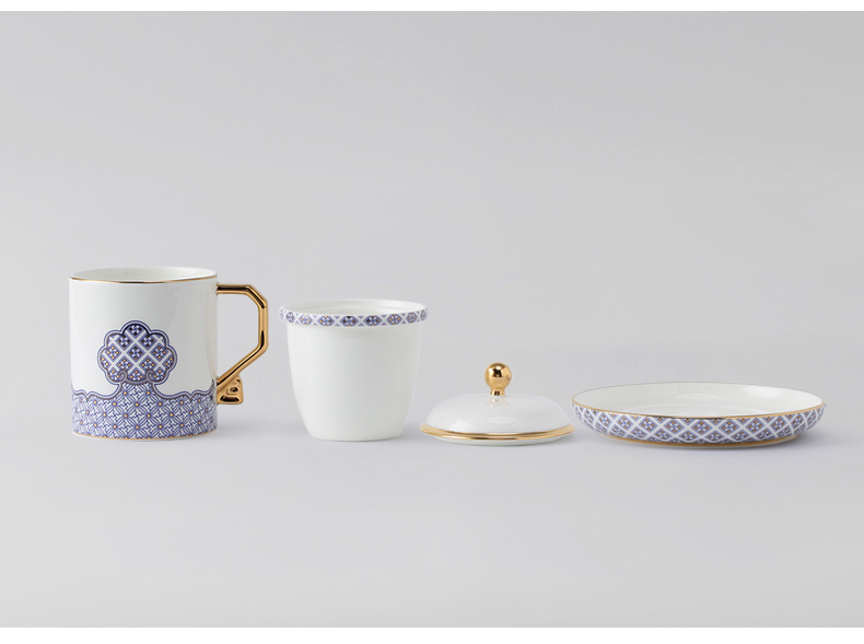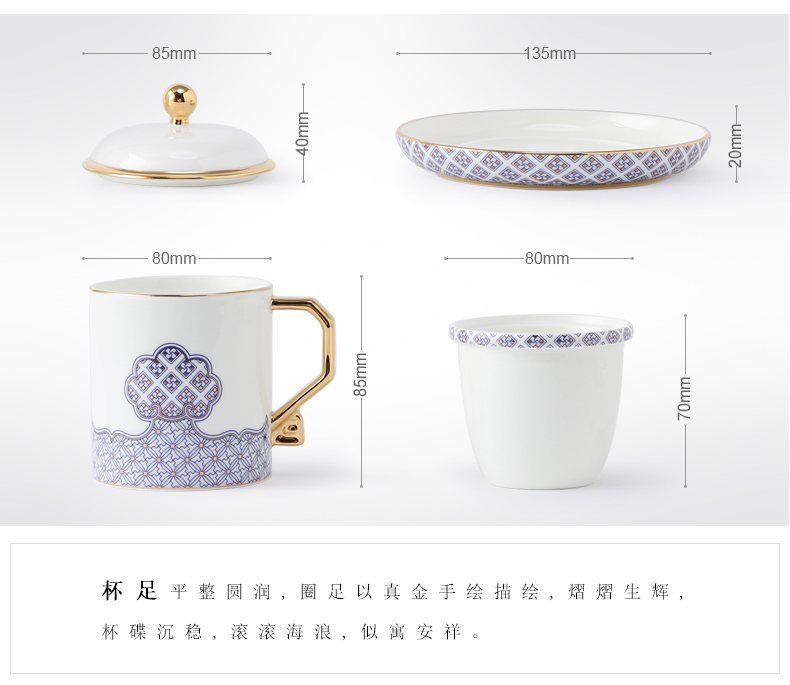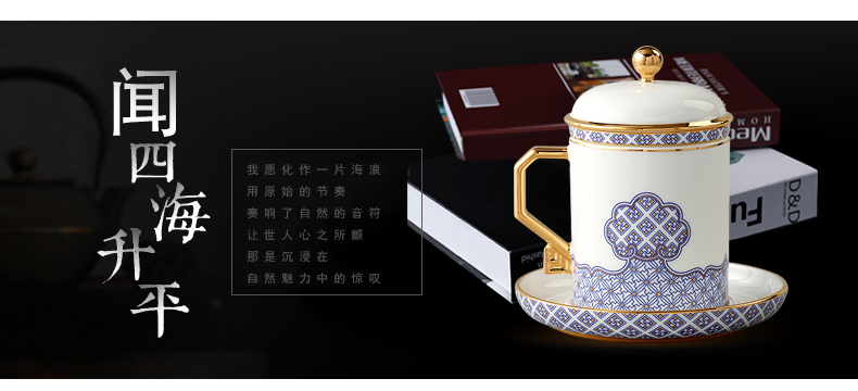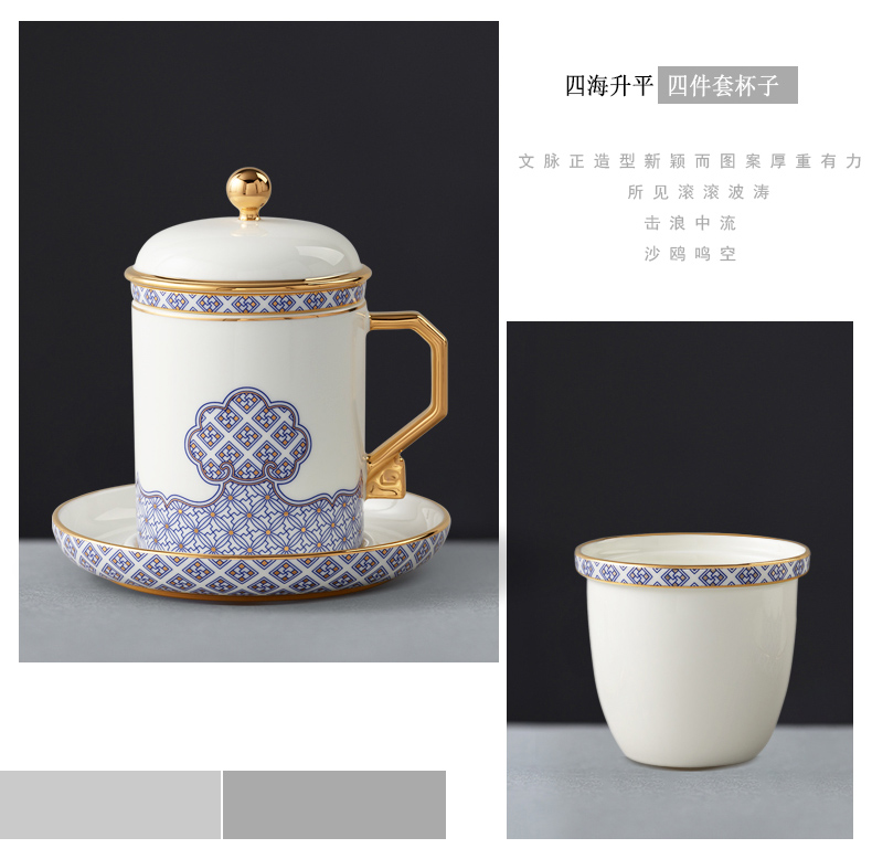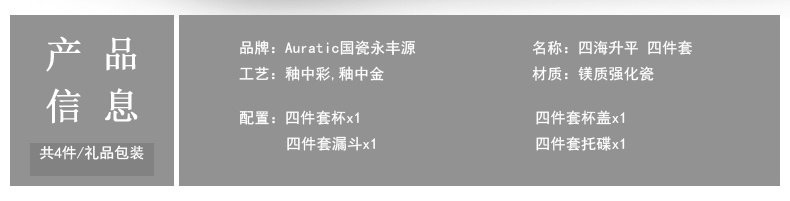 家居用品、厨卫清洁 > 餐具 > 国瓷巨匠 先生瓷四海升平 四件套盖杯陶瓷茶杯 带茶漏 泡茶杯子