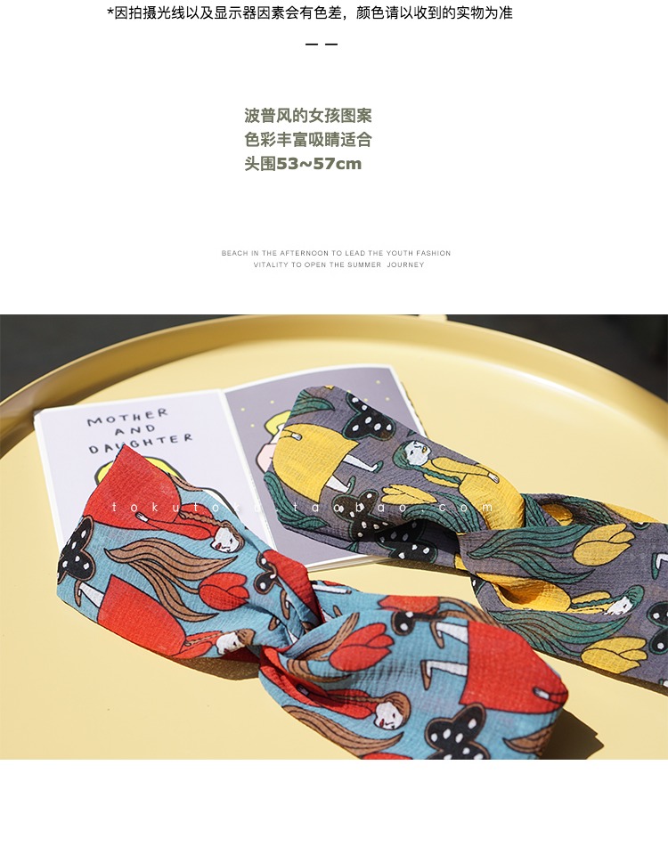 家居用品、厨卫清洁 > 装饰品 > 夏日女孩儿 ——春夏复古发带弹力可爱印花宽边发饰