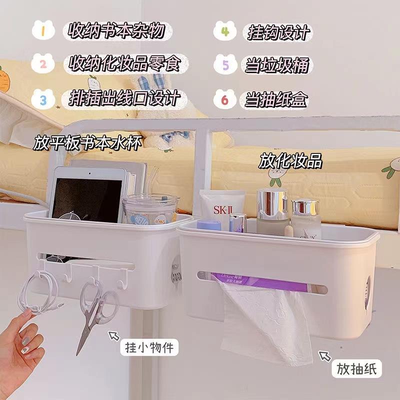 功能:收纳盒、排插收纳盒、小挂钩设计、纸巾盒、垃圾桶