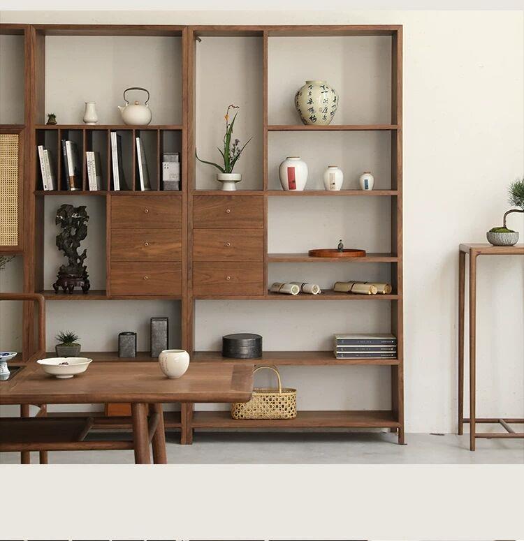融入传统博古架意境,外形方正,格局简单,安静从容,使陈列其上的物品能化繁琐喧闹于沉着。
