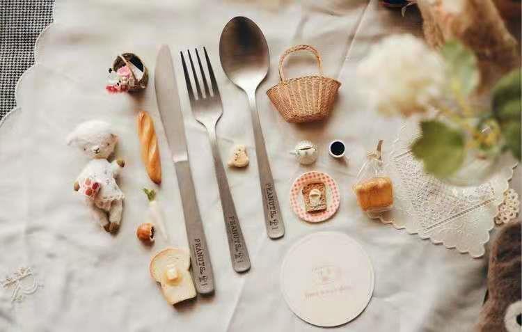 餐具套装,一套包含刀、叉、勺各一件,附赠收纳袋。
