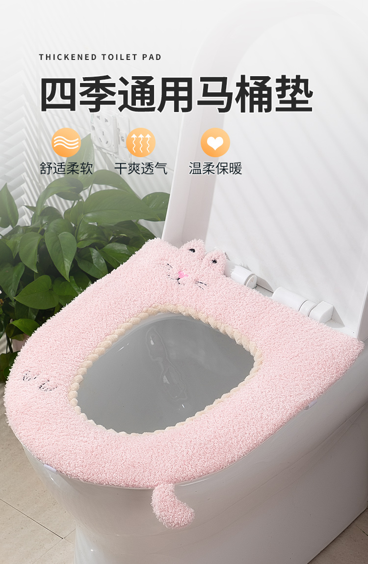 马桶坐垫家用冬坐便器套四季通用ins风可爱马桶软垫圈盖贴三件套
