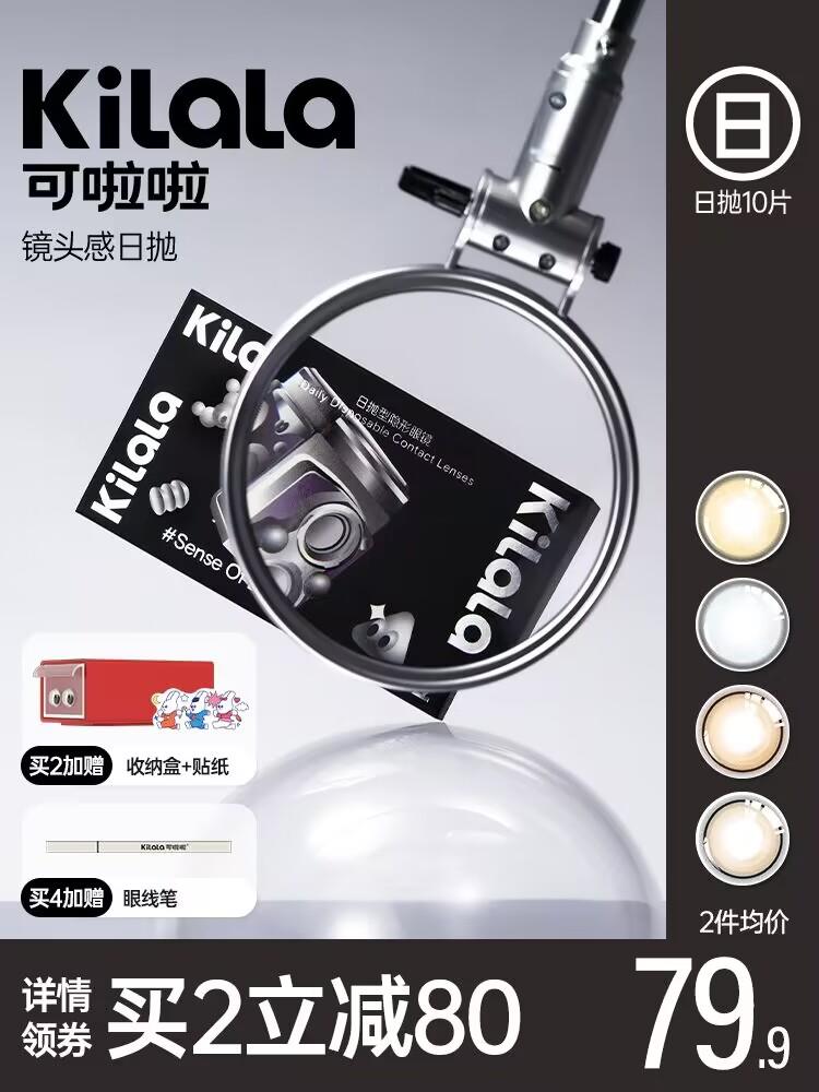 家居用品、厨卫清洁 > 装饰品 > kilala可啦啦镜头感玻尿酸海藻糖美瞳日抛女10片隐形近视眼镜正品