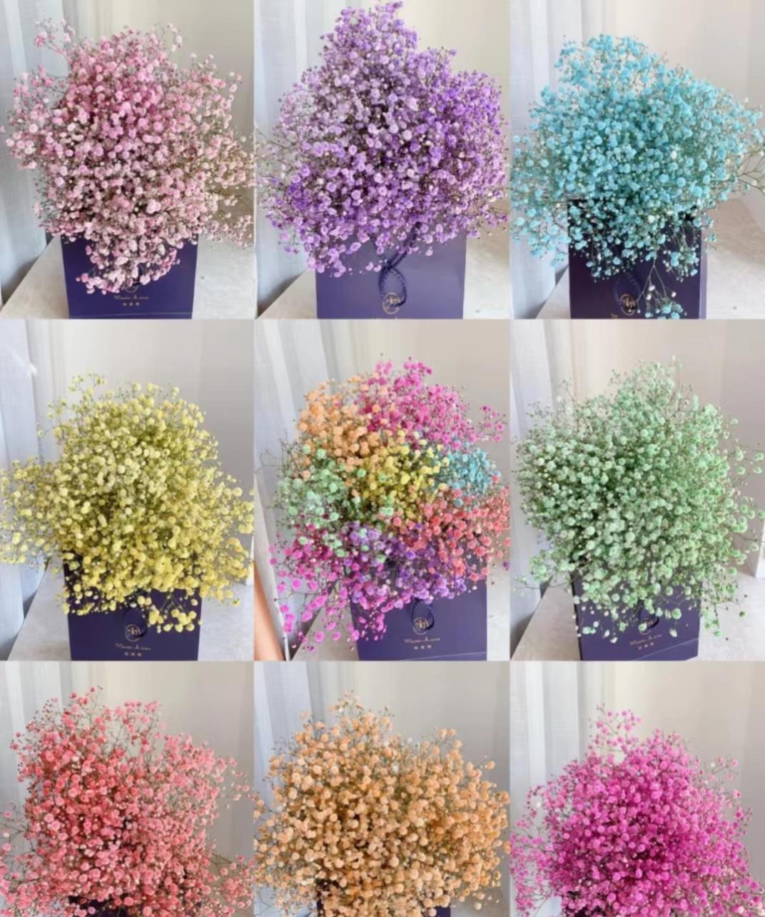 有各种颜色,寓意为我甘愿做配角,瞒着所有人爱你,我携满天星辰来看你,有决满天星辰不及你.