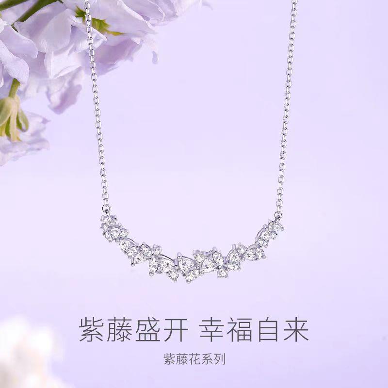 项链整体呈现出微笑的形状,犹如紫藤花在微风中轻轻摇曳,给人一种清新、优雅的感觉。采用s925银
