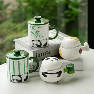 杯身以纯净的白色打底,熊猫元素巧妙点缀其中。憨态可掬的熊猫或攀附于翠绿的竹枝间,或慵懒休憩,生动形象,萌态尽显。杯盖与把手采用清新的绿色,与熊猫、竹子元素相互映衬,宛如将一片生机勃勃的竹林浓缩于杯上。