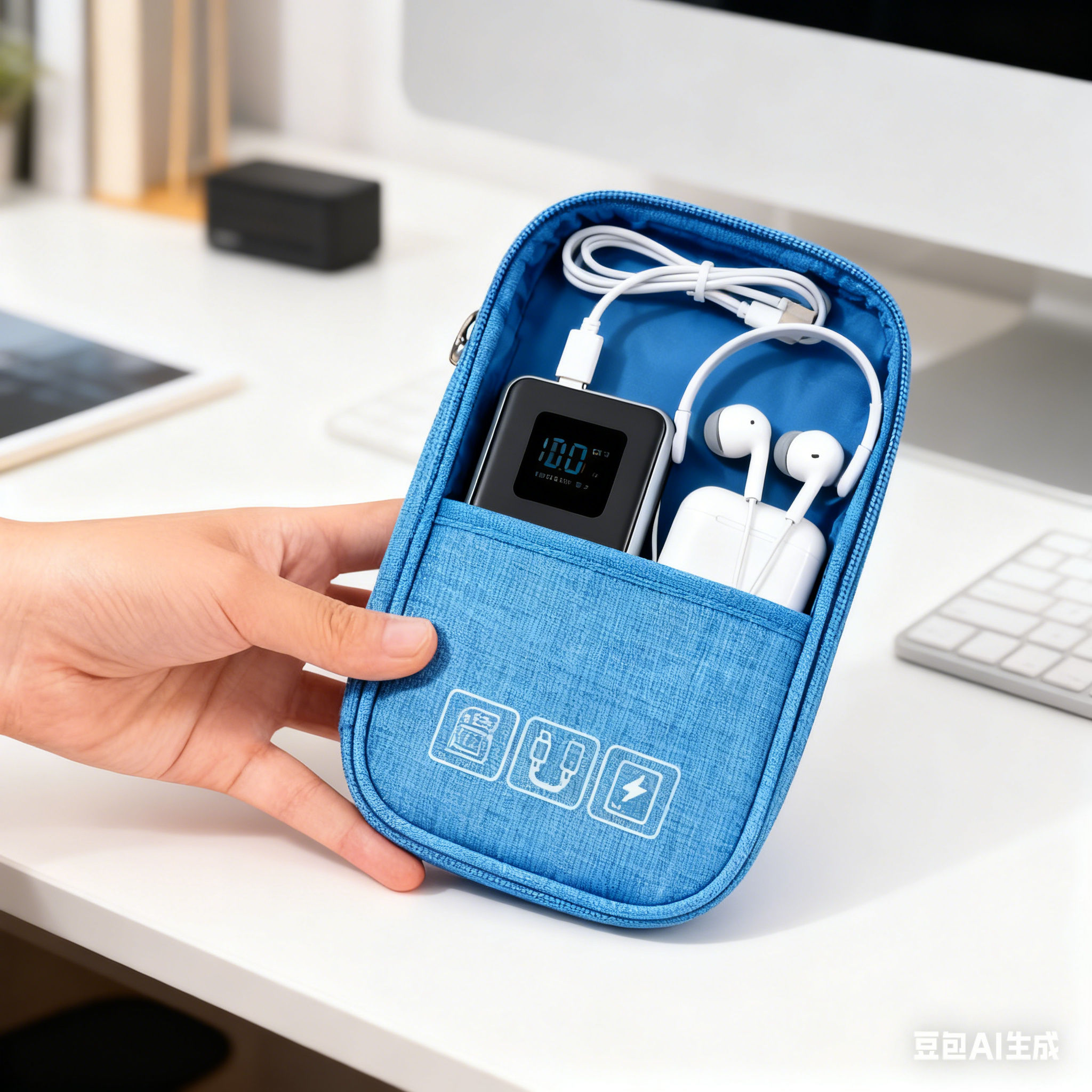 外层为航空级 TPU 防水涂层 + 耐磨尼龙纤维,内衬是记忆棉 + 防刮绒布,抗摔性能好。内部有 6 个独立格层,搭配可拆卸式 “线缆管理环” 和双侧弹力绑带,还有磁吸定位贴防止物品滑动移位。尺寸为 20×12×8cm,重量 198g,能容纳多种数码配件,颜色有月光白、深空灰、珊瑚粉等