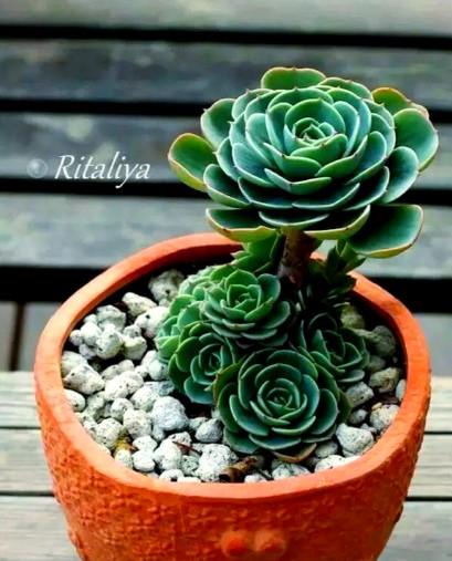 叶片宽大,排列呈莲花状,上常有白粉,株型美观,如玉石雕成的莲花,具有较强的装饰性。