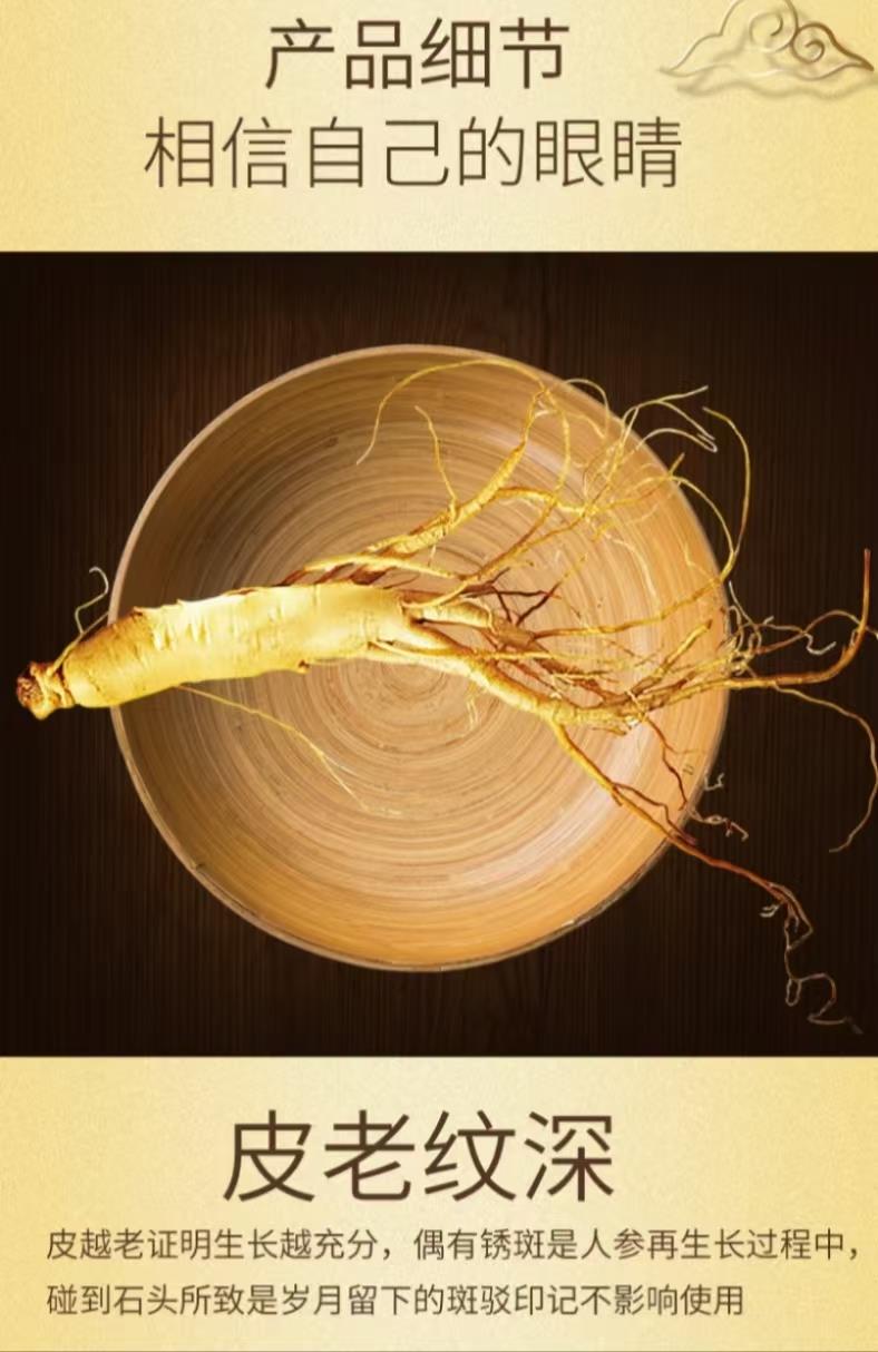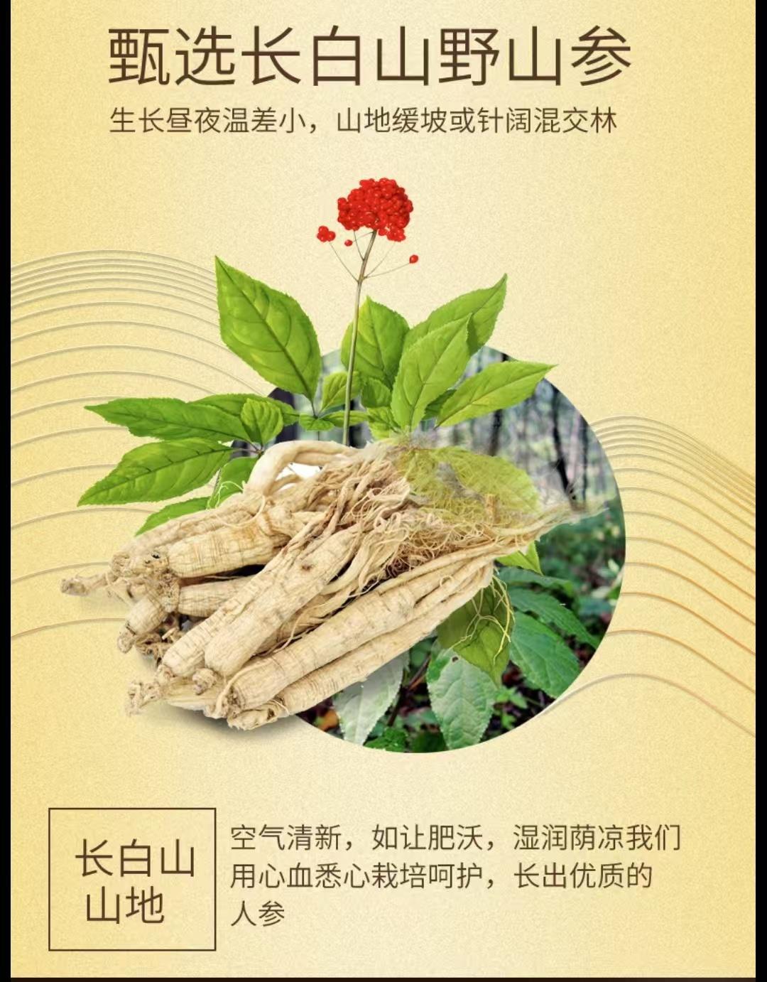 权威认证:国家地理标志保护产品,每支人参附带独立溯源码(扫码可查生长环境视频)。