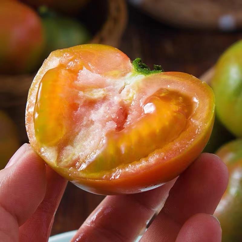颜色鲜艳,红黄绿相间,通体带有菊花纹,酸甜爽脆,肉厚多汁