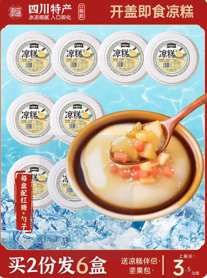 凉糕是糯米所做,四四方方的糯米块,在凉水中封存,待拿出时已是透彻里外的冰凉,一口咬下,柔软的糯米皮肉绵软滑腻,就着红糖,愣愣生出一股浓厚的甜,咽下也久久无法散去。