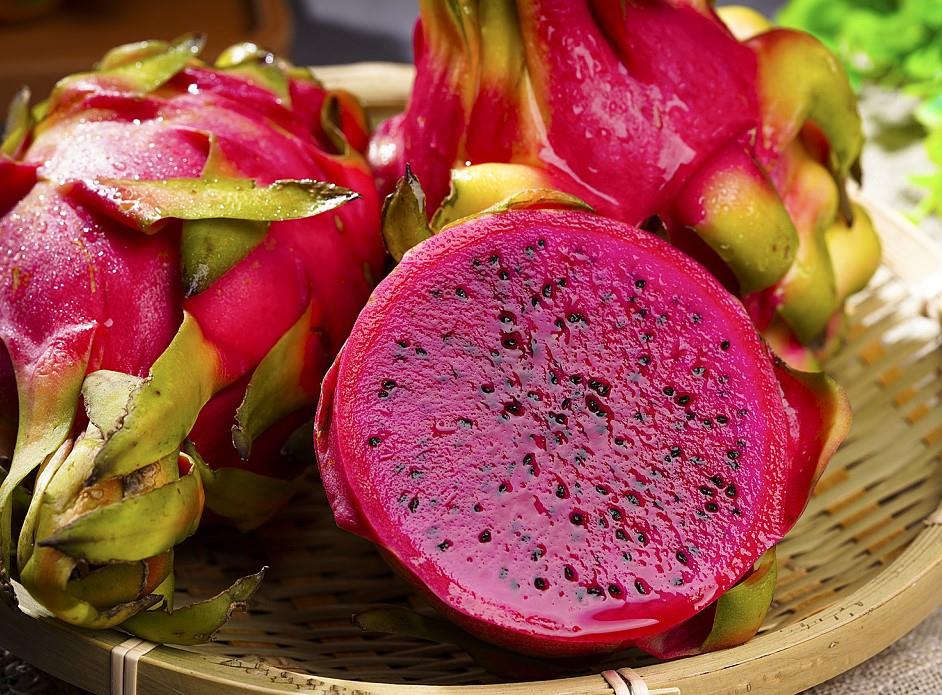 红心火龙果皮薄,叶皱,果肉嫩滑,清甜多汁!