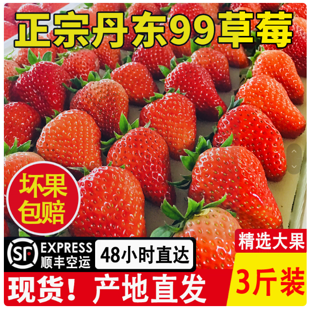 烹饪食材、果蔬生鲜 > 土特产 > 现货 丹东99牛奶油大草莓新鲜孕妇水果3斤东港红颜九九草莓礼盒装