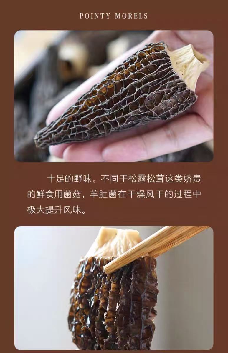 我们严选特级羊肚菌,菌体饱满完整,褶皱深邃自然,色泽棕褐温润。每一朵都经过人工精挑,确保无杂质、无添加,品质纯粹。