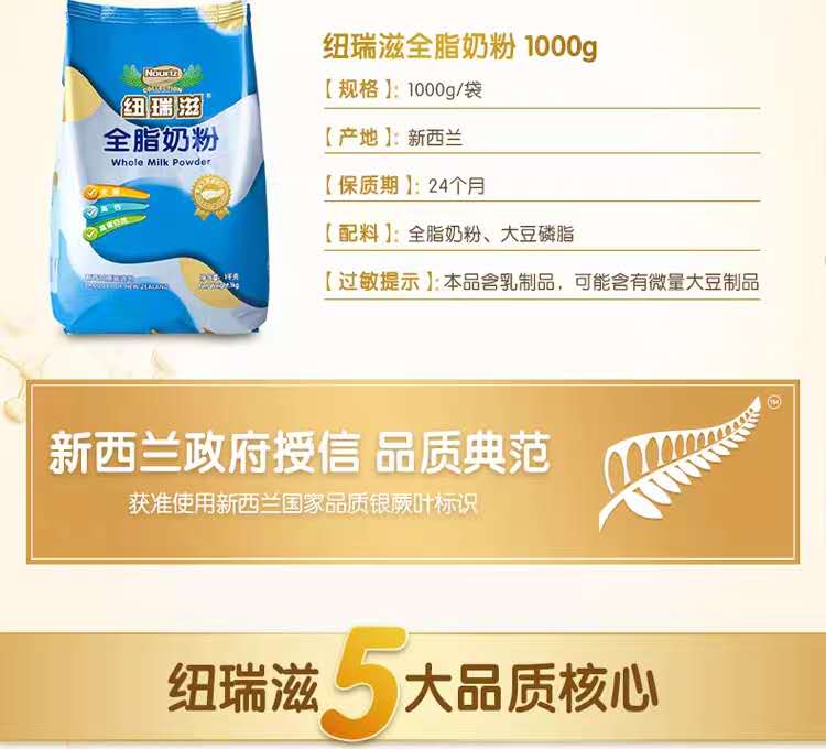 • 商品名称:新西兰纽瑞滋成人全脂奶粉