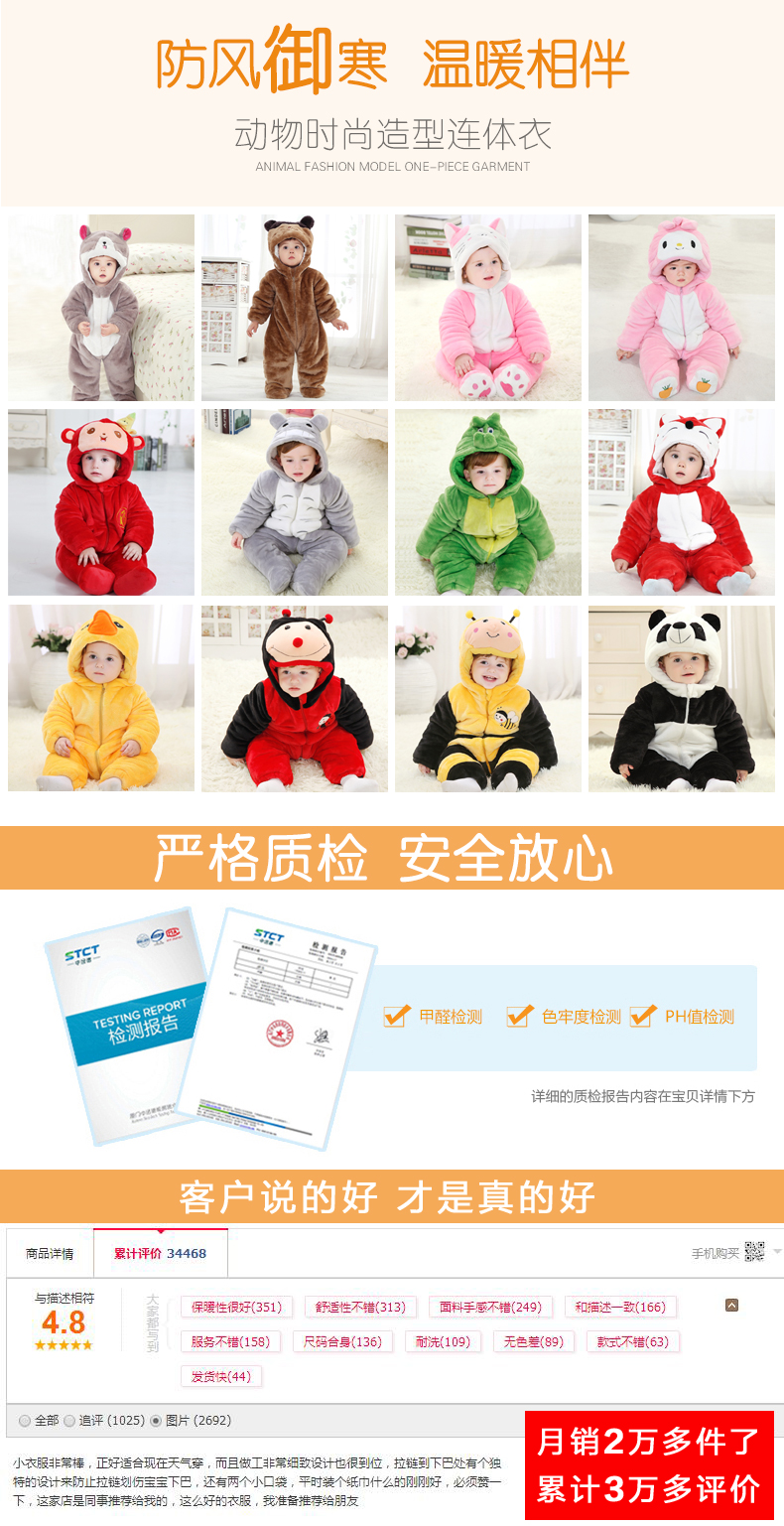 母婴用品、玩具 > 毛绒布艺 > 【小小鱼婴儿服】0-2岁冬季加厚可爱卡通婴儿服