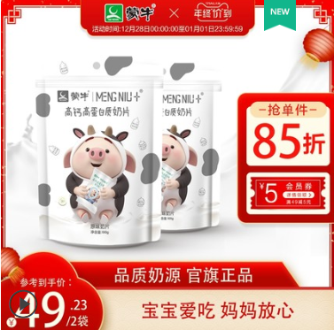 母婴用品、玩具 > 奶粉 > 蒙牛牛奶片高钙高蛋白干吃原味儿童健康零食100g*2新西兰进口奶粉