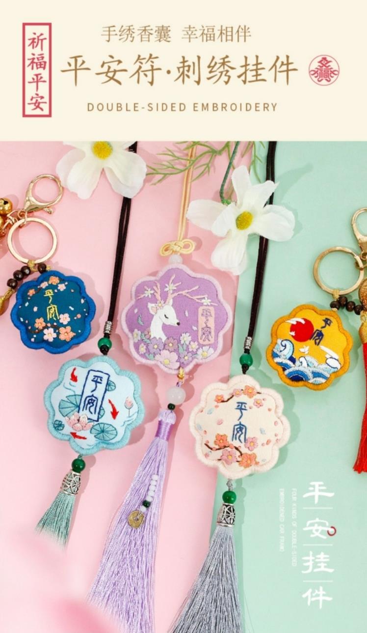 材料包内容:说明书,绣布,绣针,内衬布,绣线,填充棉,配件,挂绳,流苏,绣棚,礼盒等