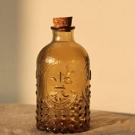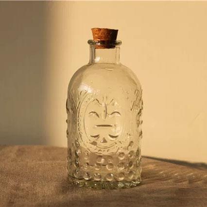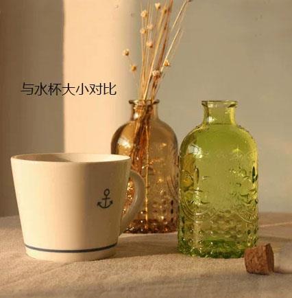【名称】立体雕花透明彩色玻璃花瓶、漂流瓶、精油瓶。