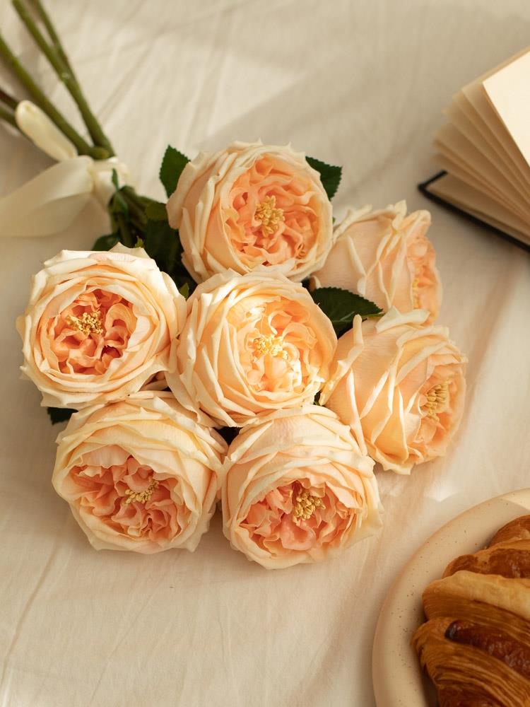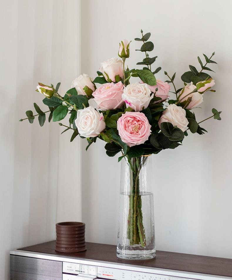 颜色是几个偏复古的色调,花瓣和叶片做了一些焦边处理干花的感觉。花瓣的层叠做的比较好,每一朵花瓣都不太一样,算是仿真花中做的比较出色的,放在家里、工作室、服装店、咖啡馆、民宿、样板房等里做摆件挺合适的。