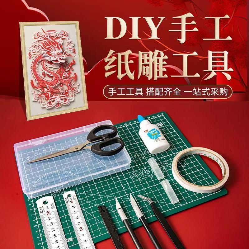 纸雕制作工具刻刀垫板卡纸刻纸学生手工diy红色主题纸雕工具套装
