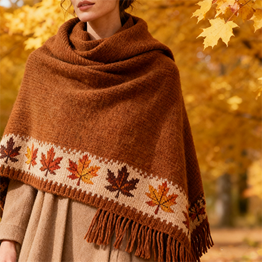 标题:枫叶暖棕针织披肩 秋日光影提花保暖外搭(包邮)
